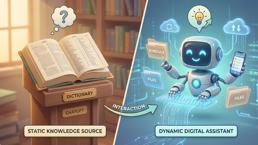 백과사전 같은 챗GPT와 일하는 비서 같은 AI 봇 비교 이미지